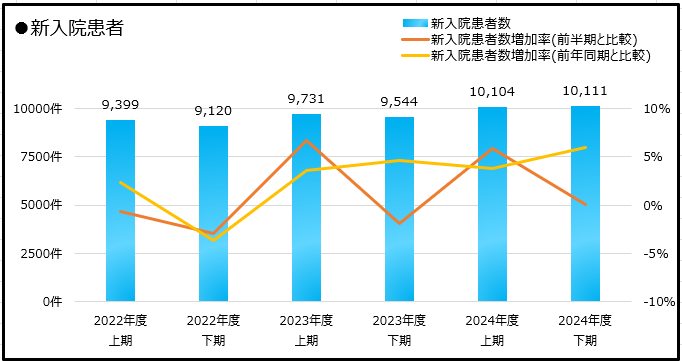 新入院患者は病院サービスの質などの内因と、社会情勢などの外因により増減します。