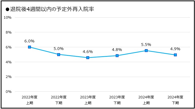 退院後に予期しない再入院がどれくらい発生したのかを示す指標となります。