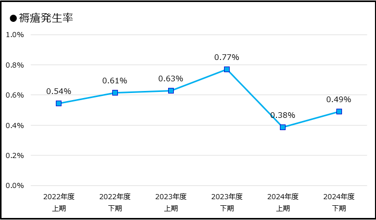 昨年度と比較して褥瘡発生率は減少しており、適切な患者管理ができていると考えられます。