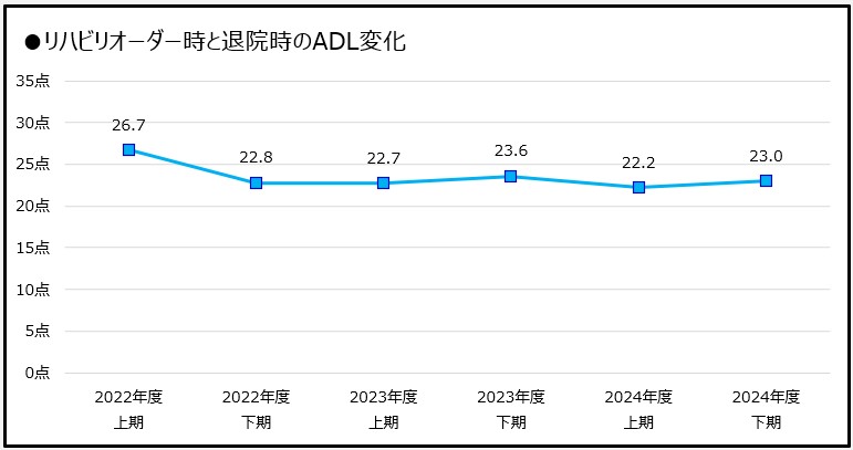算出方法は、退院時のADLからリハビリオーダー時のADLを引いた数値変化の平均値を集計しています。