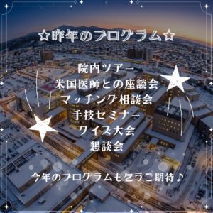 当日は、手稲渓仁会病院説明会、病院見学ツアー、ハンズオンセミナー、クイズ大会等々、さまざまな企画を予定しています!