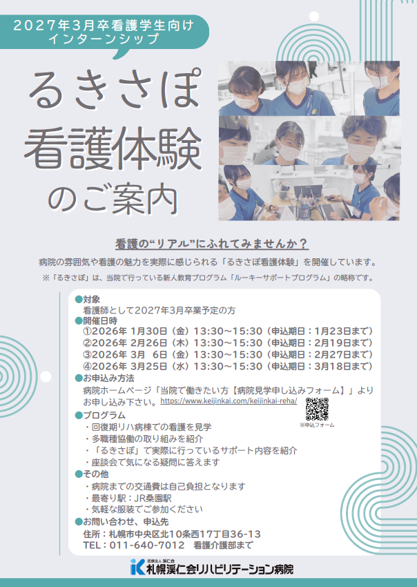 ぜひ、るきさぽ看護体験へご参加いただき、渓リハの雰囲気や魅力を体験ください。