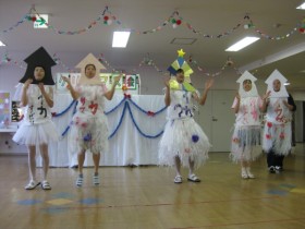 昨年12月24日から3日間に渡りクリスマス会を行いました。豪華な食事の後はケーキとジュースで乾杯し、恒例の職員余興の開始です。今回もご利用者様に楽しんで頂けるよう頑張りました!