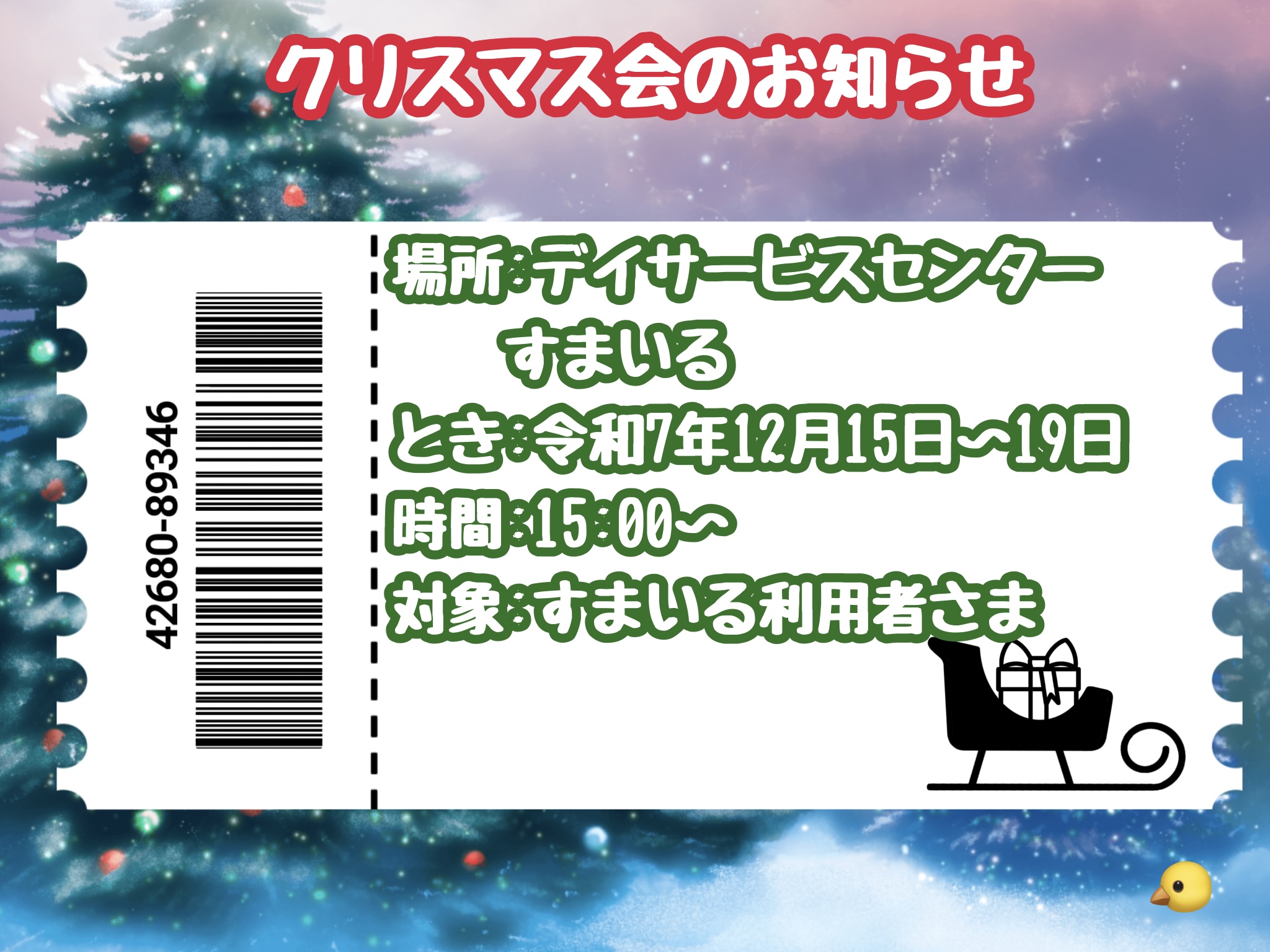 デイサービスセンターすまいるです!〜クリスマス会のお知らせ〜