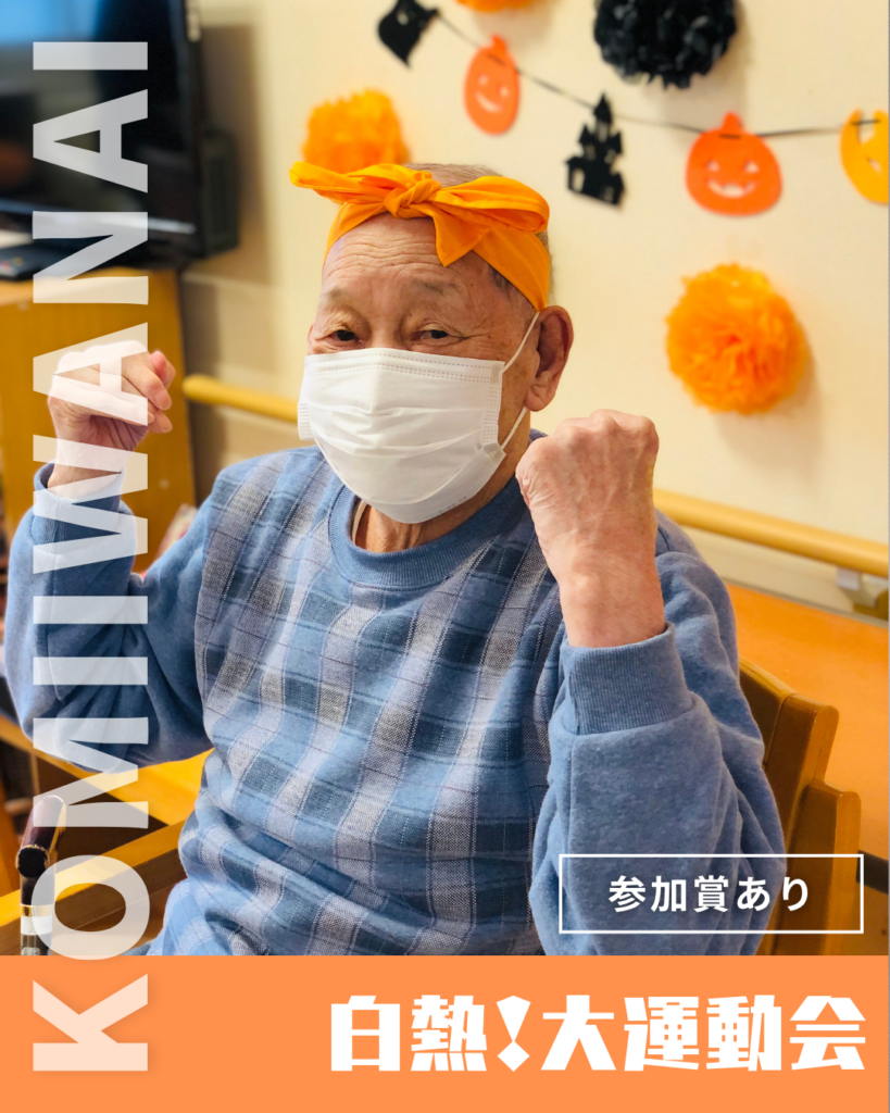 【コミ岩】白熱!大運動会 2025.10.23 新着情報 コミ岩のユニットで運動会が開催されました🎉みなさん自分で鉢巻を巻いて気合十分!!優勝チームには甘酒を1箱プレゼント🎁✨いっぱい運動して、夜はぐっすり眠れそうです(-_-)zzz