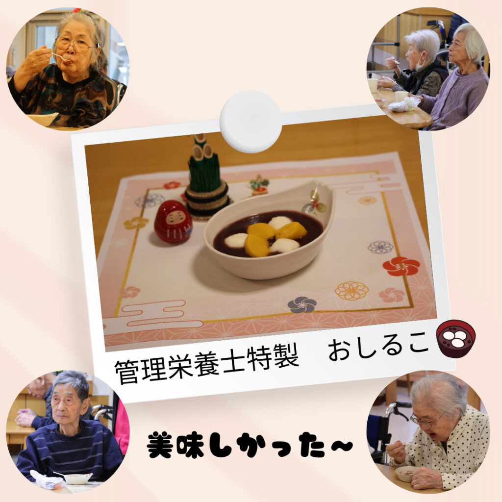 【ふれ愛】小正月 2026.01.16 新着情報 ふれ愛の郷では小正月に餅まきならぬ、お菓子まきを行いました🎶皆さん手を大きく挙げてお菓子を取っていましたヽ(^o^)丿お菓子まきの後は、管理栄養士特製のおしるこを食べてもらいました。このおしるこ、お豆腐で出来た団子を使用しており、どなたでも食べれるものになっています🍡💗食感もよく、とても美味しかったです!!
