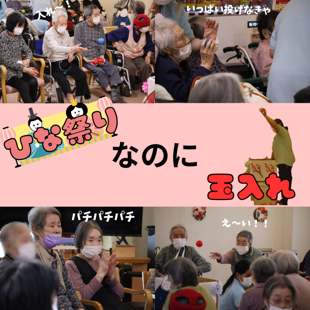 【ふれ愛】ひな祭りレク🎎 2026.03.05 新着情報 3月3日はひな祭り。美味しいお昼ご飯を食べた午後は玉入れレクリエーションを行いました。皆さん、一生懸命に玉を投げていました。運動の後は甘酒を飲んでいただきました。