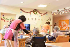 館内をご紹介します! 2021.12.04 新着情報 今年も残すところあとわずかですね。本日は、クリスマスムードに包まれた館内をご紹介いたします♪クリスマスツリーを飾ったり、リースを壁にかけたり!サンタさんとポインセチア!廊下の天井もにぎやかです!今でも器用に編み物をされるご利用者さん、すごいです!住み慣れた岩内の街で、いつまでもお元気に過ごしていただけるよう、これからもサポートしてまいります!2021年12月2日