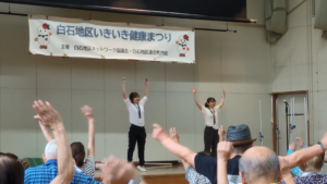 いきいき健康まつりのお手伝いをしてきました! 2025.09.08 新着情報 介護予防 老健 9月7日(日)に行われた「第19回白石地区いきいき健康まつり」にスタッフとして参加してきました!! 予防センターと包括支援センター職員は健康情報コーナーをリハビリ職員は体力測定コーナーをお手伝いしました。 会場は食育やモルックの体験など様々なブースがあり、とてもにぎわっていました✨今後もコミ白として地域貢献を続けられたらよいな~と思う一日でした!