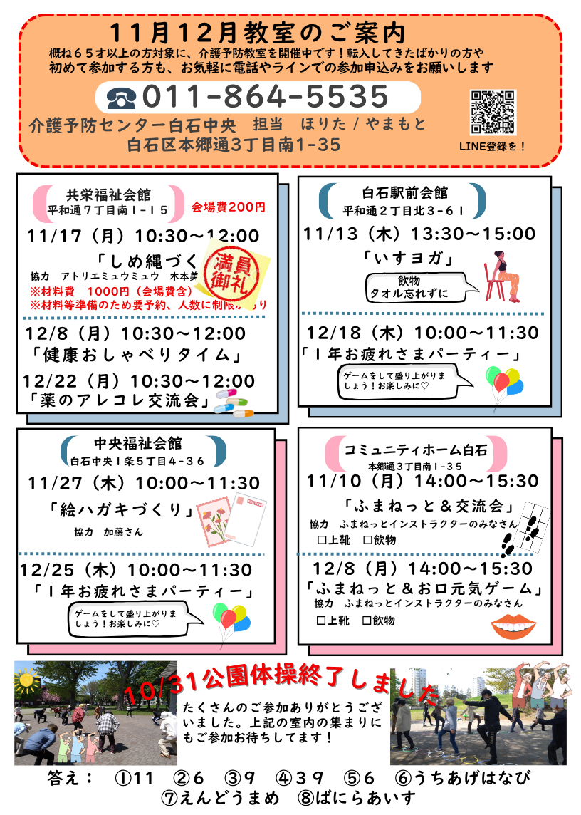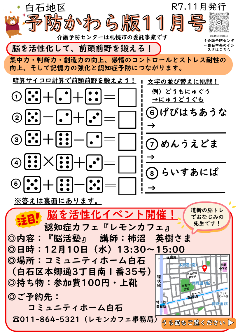 介護予防センター白石中央からのお知らせ(予防かわら版11月号発行) 📣