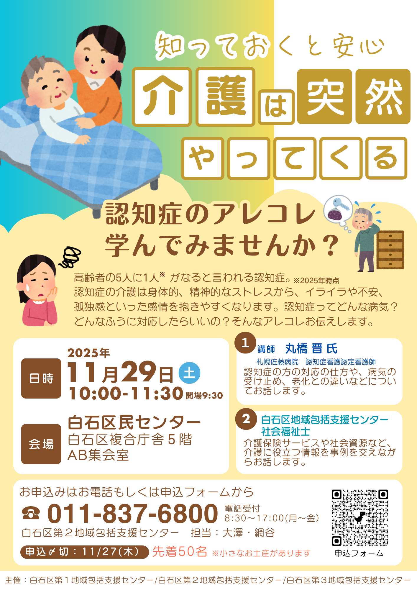 ご不明な点がございましたら、白石第1包括支援センター ☎011-864-4614 までご連絡お願いします。
