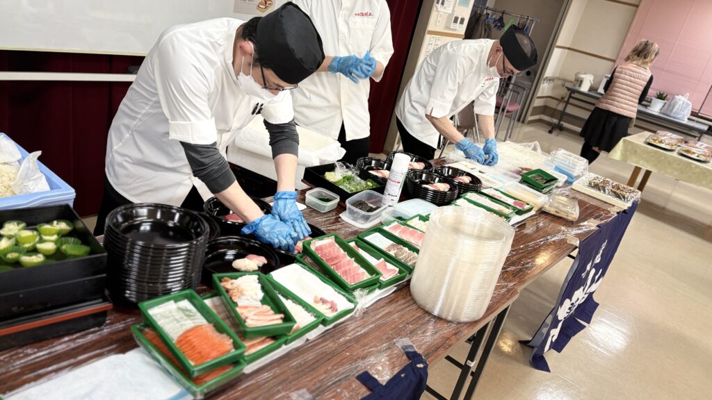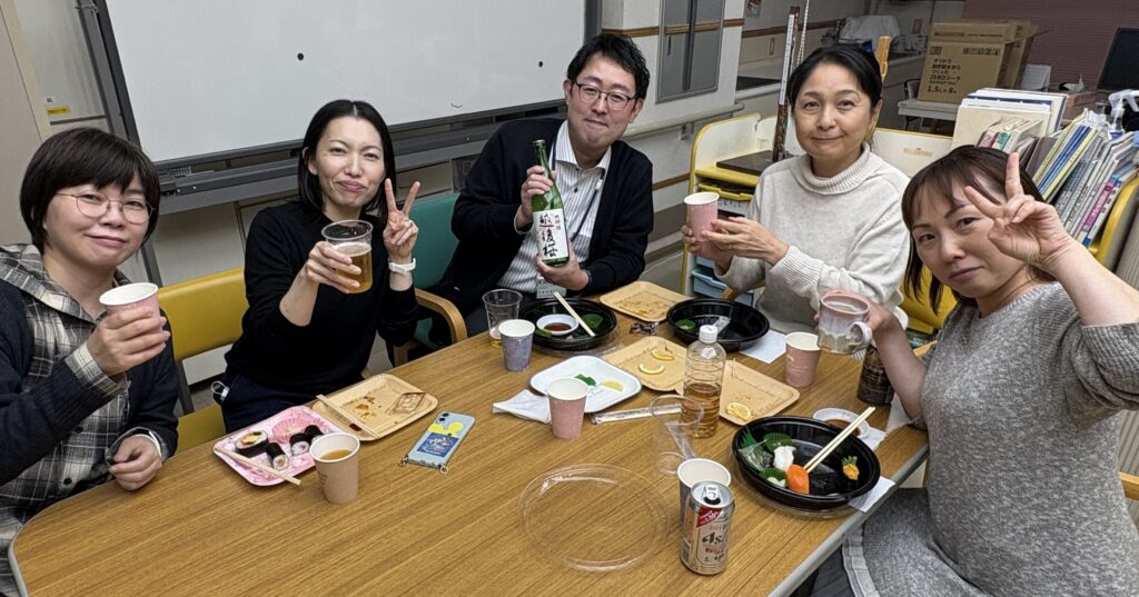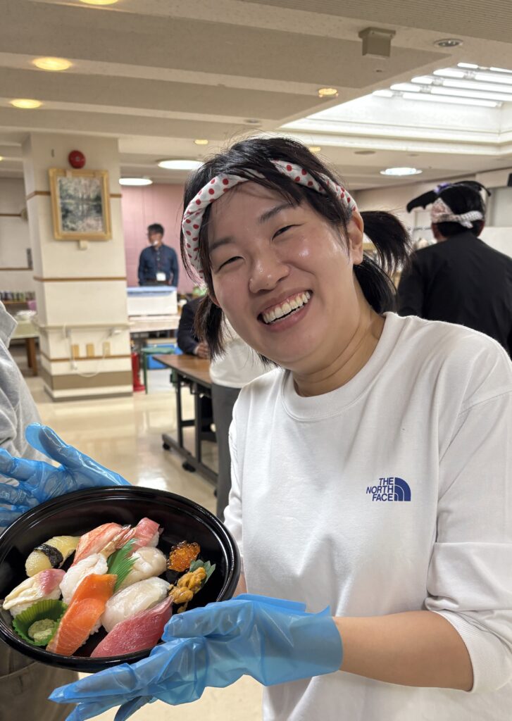 お寿司の握り体験をしたり、職員の子どもも参加したりと、仕事終わりにみなさん楽しまれていました。