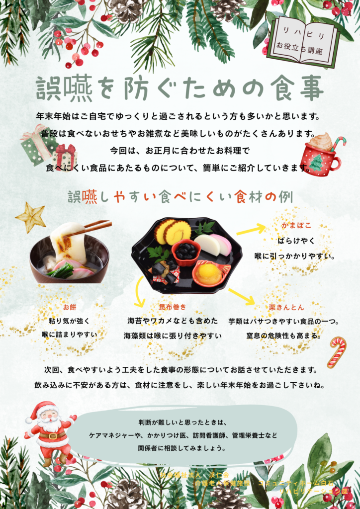 おせち料理やお雑煮には、実は高齢の方や飲み込みに不安がある方にとって、注意が必要な食材が多く含まれています。