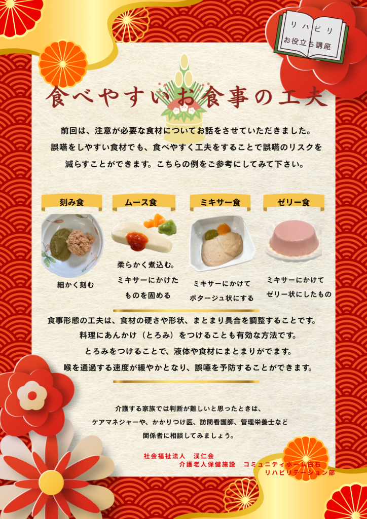 リハビリお役立ち講座 第6回:誤嚥を防ぐ食材選びと、食べやすくするひと工夫