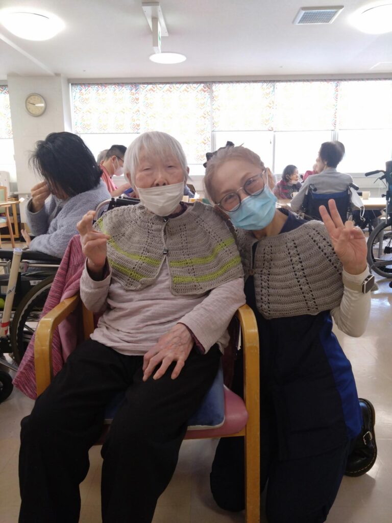 後日、実際に入居者の方が使用している写真をお見せすると、『誰かの役に立てて嬉しい!』と本人の活力になり、次回は、認知症マフを作ってくださることになりました!(*^-^*)やる気に満ち溢れています。