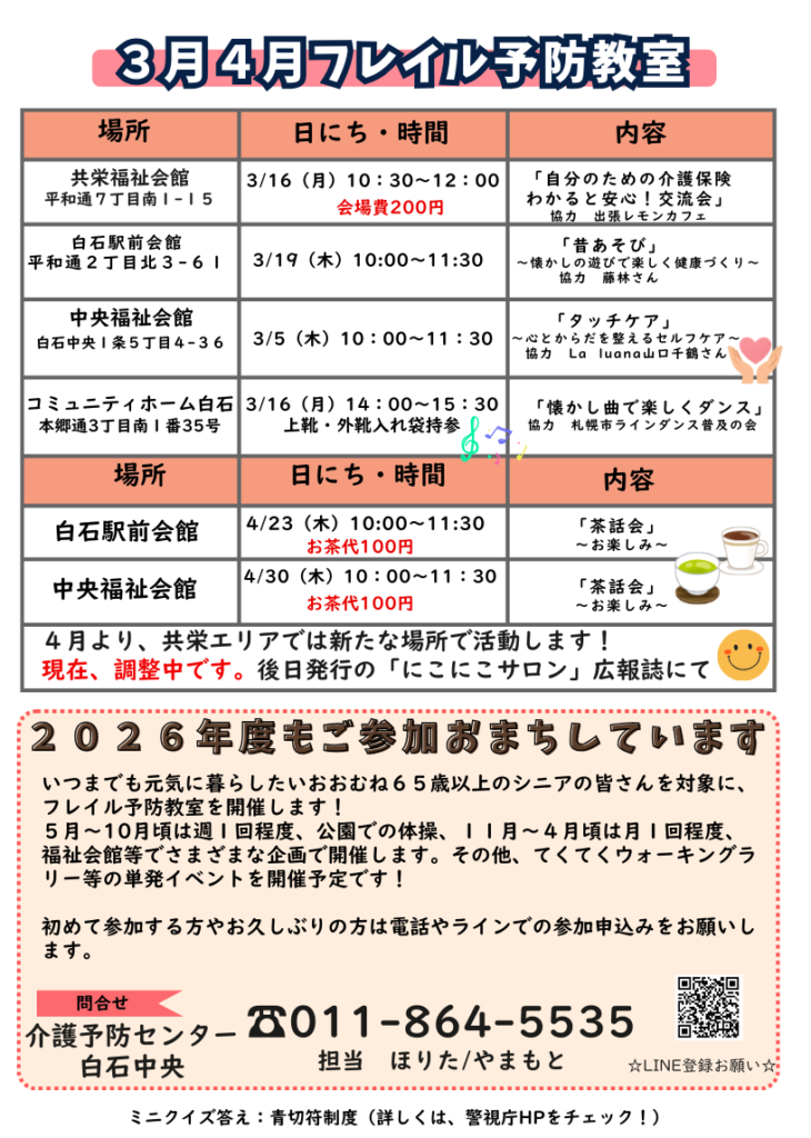 介護予防センター白石中央からのお知らせ(予防かわら版3月号発行) 📣