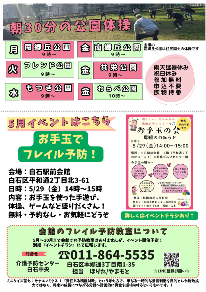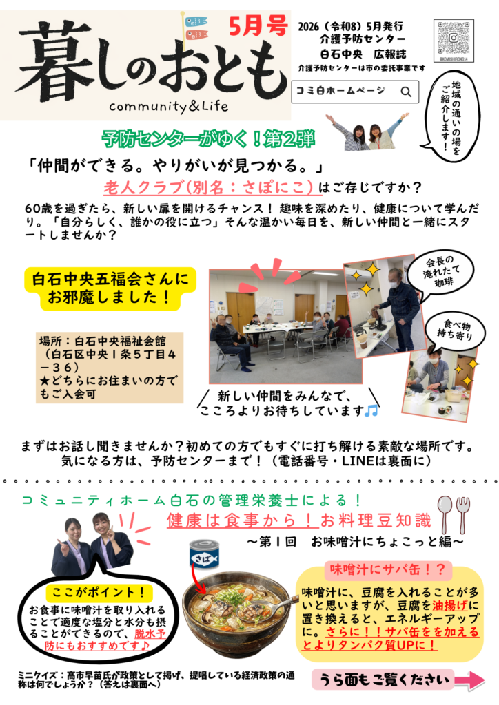 介護予防センター白石中央からのお知らせ(暮しのおとも5月号発行) 📣