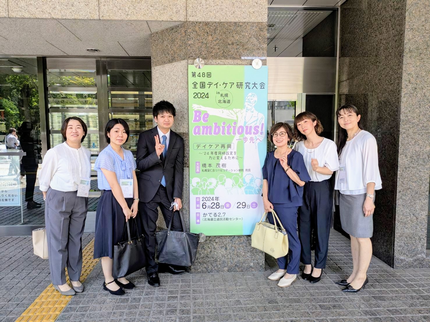 全国デイ・ケア研究大会2024☜ 2024.07.01 新着情報 老健 今回は、6月28日(金)~29日(土)で開催された「第48回 全国デイ・ケア研究大会2024 in札幌・北海道」に参加した様子をご報告します! コミ白からは4演題発表を行いました。発表前の緊張感が伝わってきますね・・・。 全国のデイケア事業者の方々が集まっているだけあり、発表の内容は濃いものばかりでした!コミ白でもマネしたい、マネできそうなことはどんどん取り入れていきたいと思えた一方で、コミ白の取組みも”マネしたい!”と思ってもらえるようなものにしたいと強く感じた2日間でした。