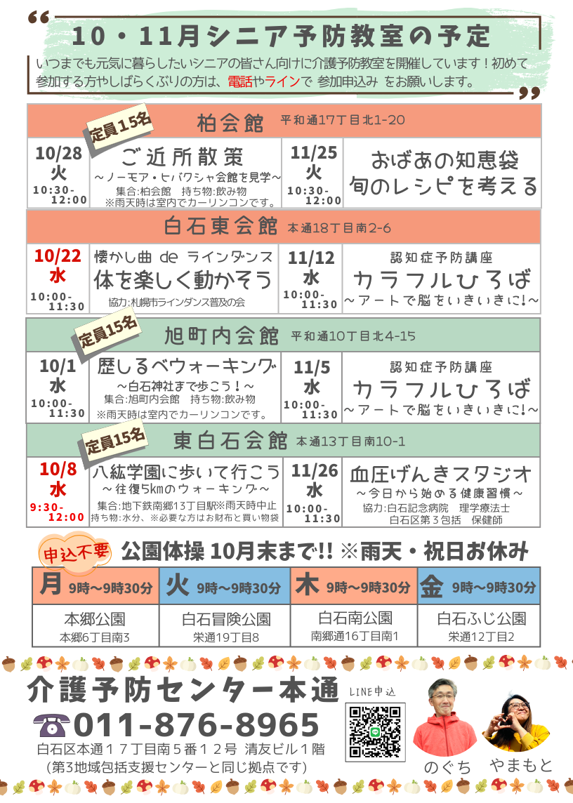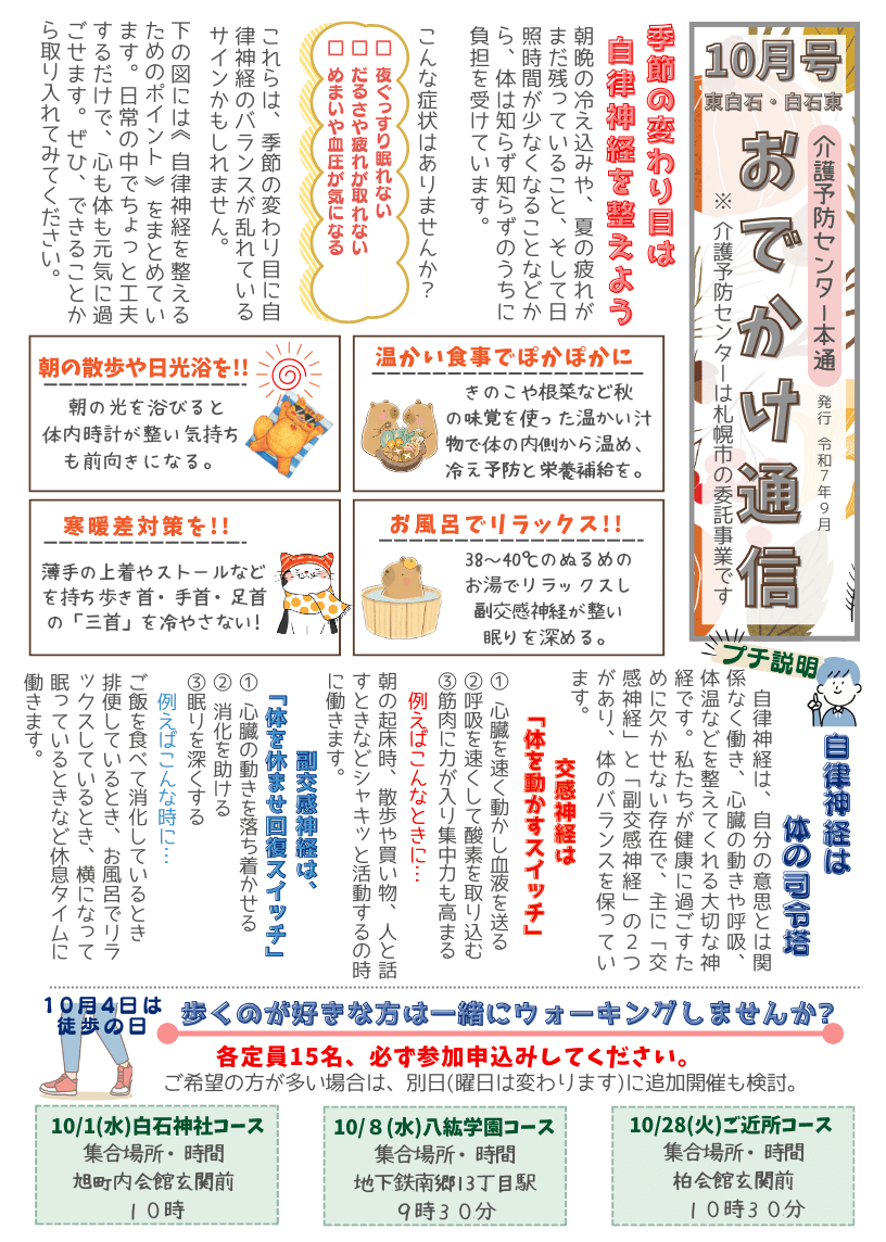 介護予防センター本通からのお知らせ(10月号東白石・白石東地区通信)