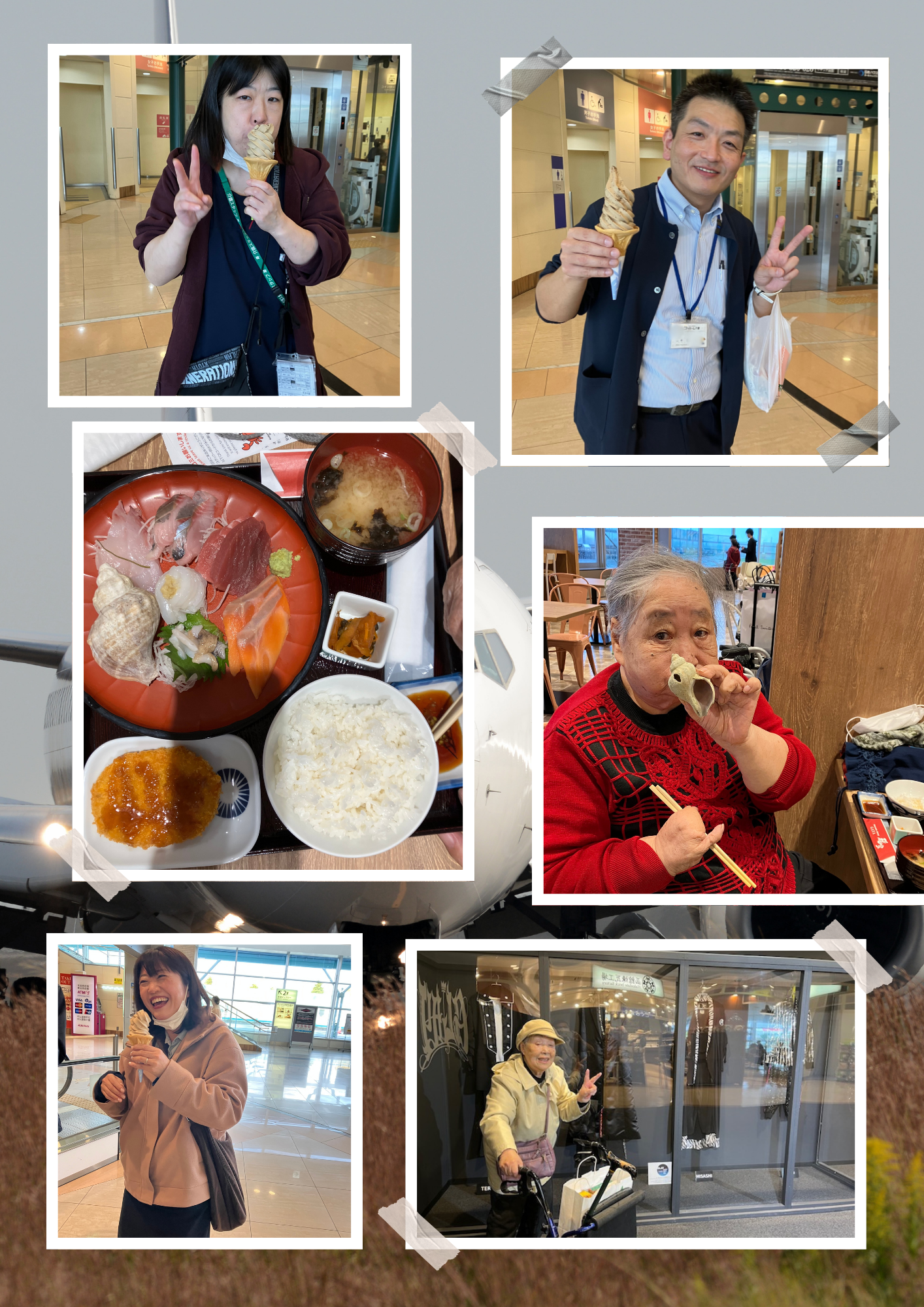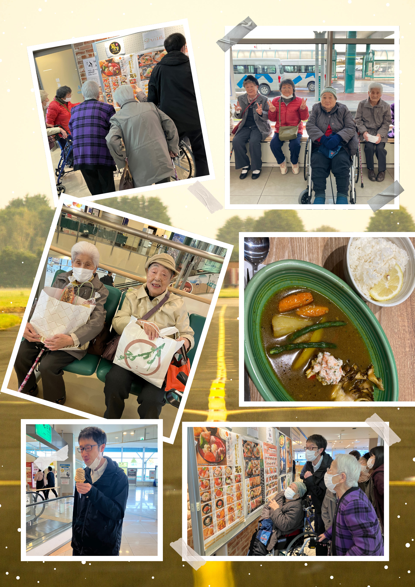 は~るばる来たぜ♪函館空港~✈ 2025.11.26 新着情報 老健 デイケア初の遠出!外出行事としては遠すぎると思いつつ、はるばる函館空港まで見学&食事に来ました。が、この日は生憎の雨・・・飛行機をデッキに出て見る事は叶いませんでしたが、これから旅行に行く雰囲気たっぷりの中でのお食事タイム⏰。食べるって、おしゃべりするって、こんなにも人をウキウキさせる材料なんだと改めて感じる時間でした♪施設に戻った後も疲れを感じさせない利用者さんは、まだまだ元気いっぱいです。これからもデイケアで楽しい想い出を増やしていきましょうね!