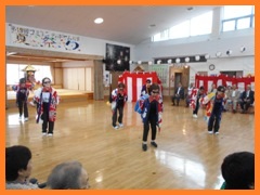 | 続いては「Rダンスカンパニー」のキッズたちによるピップホップダンスが披露されました。 「Rダンスカンパニー」はジャズダンスやヒップホップなどを対象としたサークルで、本日は年中さんから小学生までの子供たちが来てくれました。 可愛らしいキッズたちのダンスに利用者様も大変喜ばれていました。
