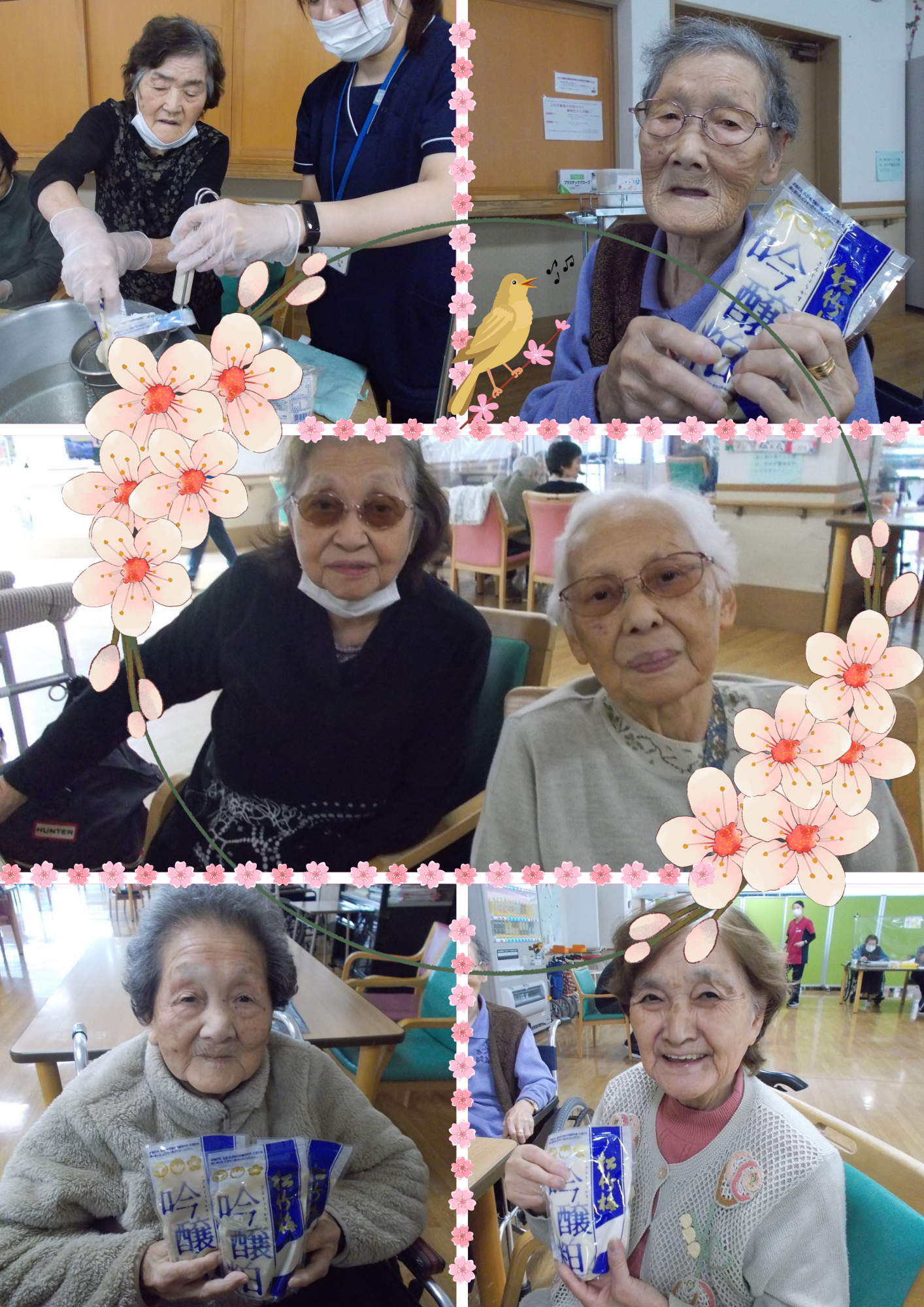 管理栄養士2名が企画する毎月2回の『調理レク』。翌日の昼食メニューになるシチューやカレーライスの材料になる野菜の皮むきや、ひな祭り時期の桜餅の葉巻などなど興味のある方がレクに参加してくれています。調理と言うと女性が多いかと思いきや男性もどんどん参加してくれる楽しいクッキング教室なんです。