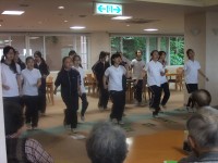 聖心女子校ボランティア活動 2012.06.22 新着情報 [聖心女子校ボランティア]今年も6月22日金曜日の午前中に聖心女子高校の中学2年生19名が当施設のボランティア活動に来てれました。O(≧∇≦)O昨年よりも人数が多く、廊下のカーテンを1枚1枚丁寧に外して洗濯や希望者のお部屋の窓拭き掃除を行ってもらいました。その後は、食堂にて30名程度の入居者の前で手話を交えた歌など3曲を披露してもらいました。毎年の事ながら入居者様も若い生徒さん達から元気なパワーを頂いている様子でした。☆⌒(*^▽゜)v