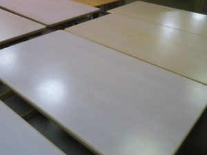 一つ一つのテーブルを職人さんが確認し、無光触媒を施工しました。