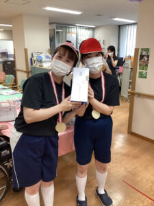 職員余興では男性職員 対 女性職員対抗で借り物競争や仮装、けん玉等のミッションを競い合います。