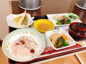 メニューはお赤飯に天ぷらなどなど。
