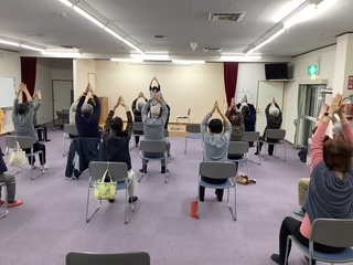 先日すこやか倶楽部で行った椅子ヨガの様子です。姿勢と呼吸を意識しながら楽しく行われていらっしゃいます。