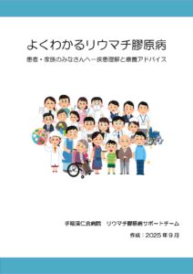 2021年7月には、患者家族向けのパンフレット「よくわかるリウマチ膠原病 疾患理解と療養アドバイス」を作成し、配布しています。