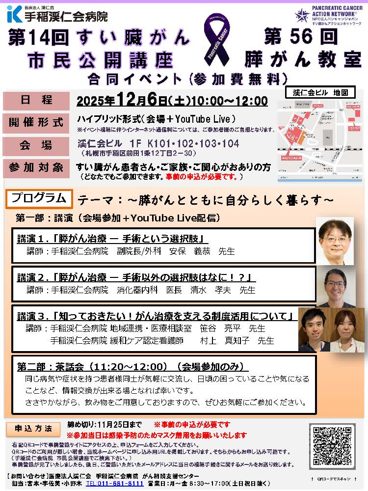 手稲渓仁会病院 第14回すい臓がん市民公開講座 & パンキャンジャパン北海道支部 第56回膵がん教室