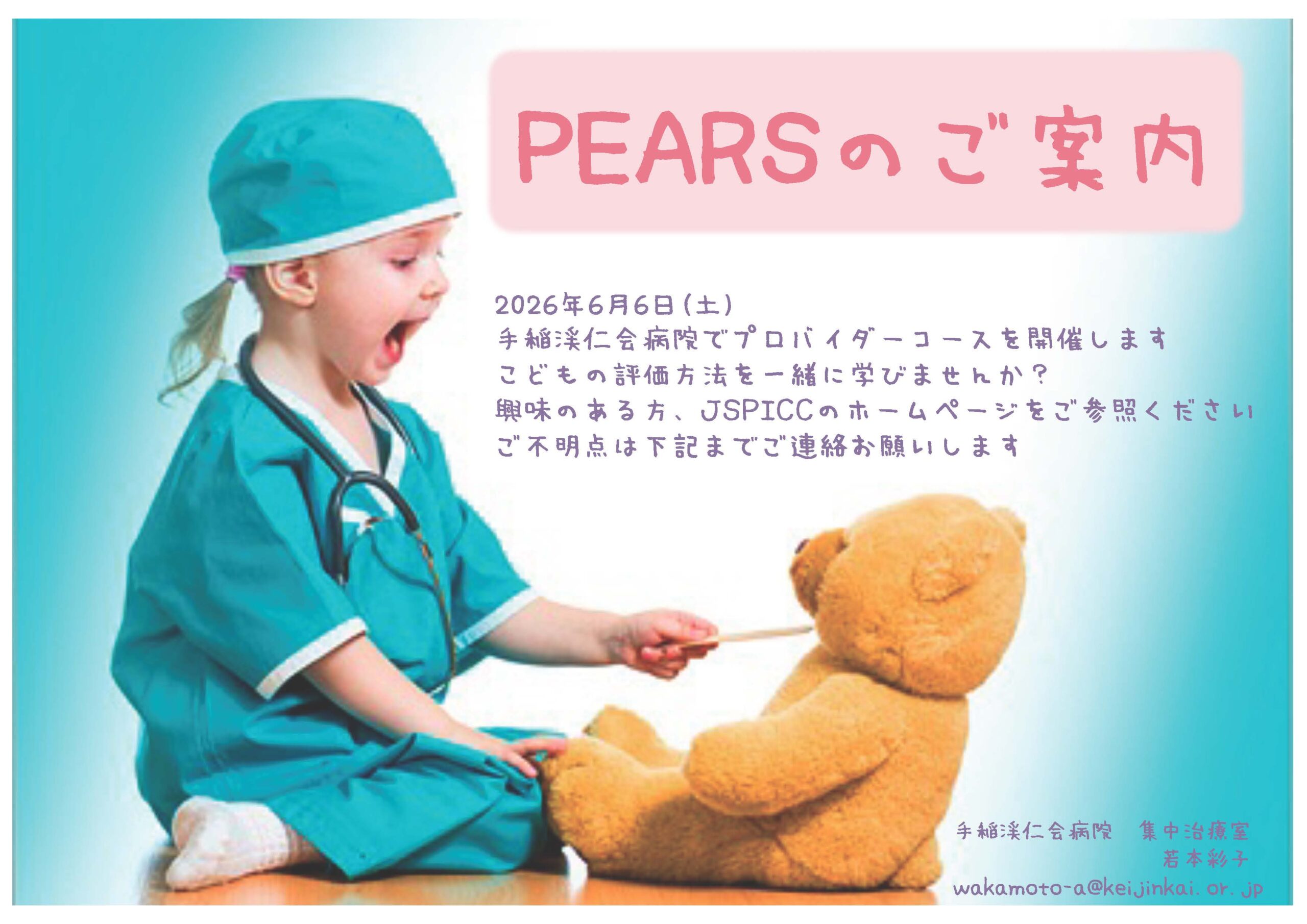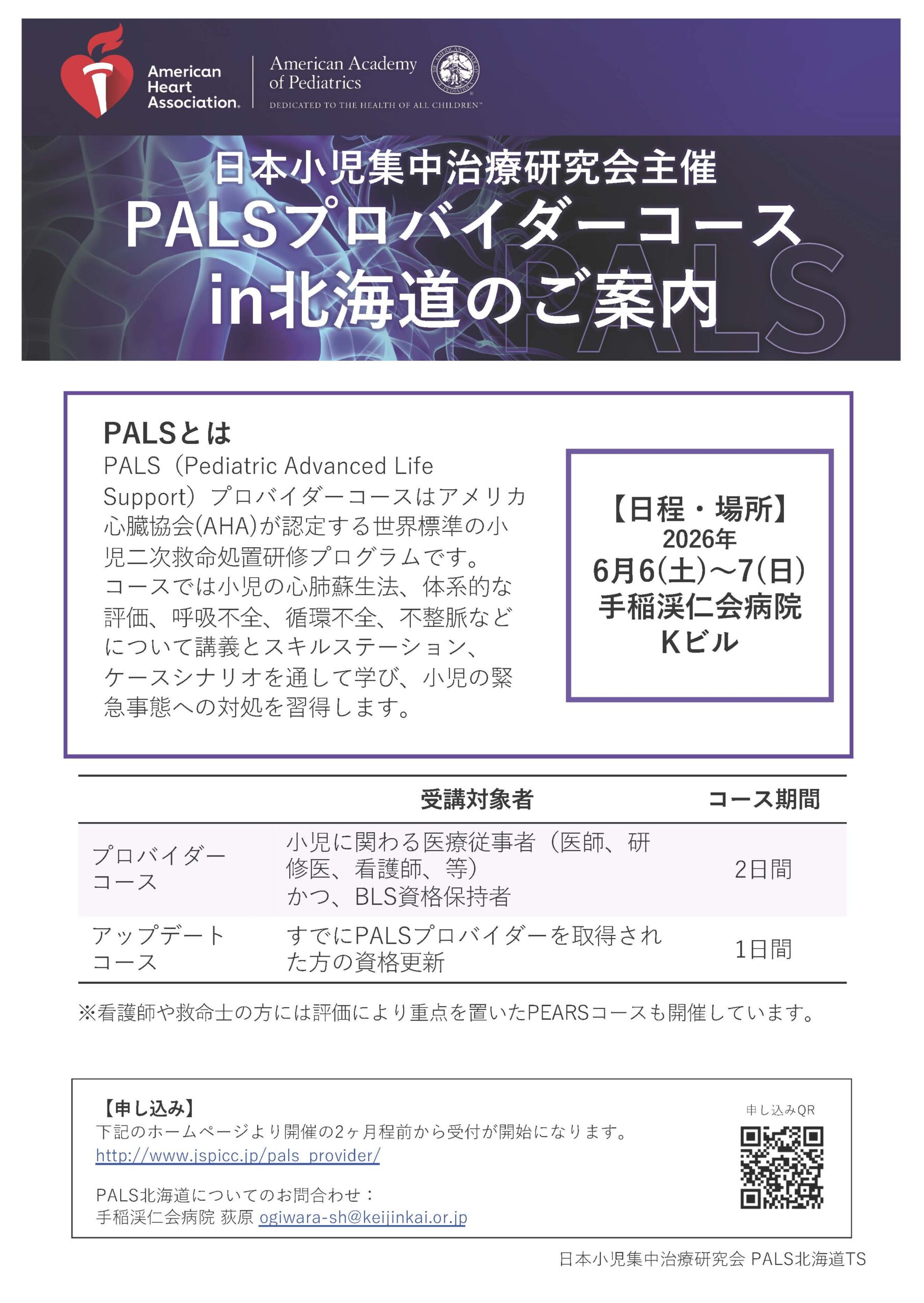 6月に開催される日本小児集中治療研究会主催PALS、PEARSコースin北海道のご案内です。