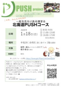 当院のこども救命センター主催で一般市民向け救命講習会「北海道PUSHコース」を開催いたします。